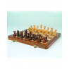 Une mallette tout-en-un pour jouer aux échecs n'importe où, mais toujours avec classe. Entièrement en bois , l'échiquier pliable Weible contient des compartiments de rangement pour ses pièces , également en bois. Déplié, la mallette offre un grand plateau de 38 cm. Les pièces sont équipées de fe